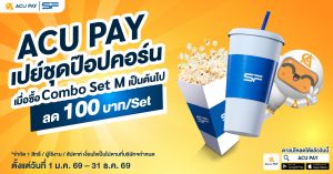 รับส่วนลด ป๊อปคอร์น SF Cinema 100 บาท เพียงจ่ายผ่าน ACU PAY E-Wallet ใช้ได้กับ Combo Set ที่ร่วมรายการ อร่อยคุ้มในราคาสบายกระเป๋า