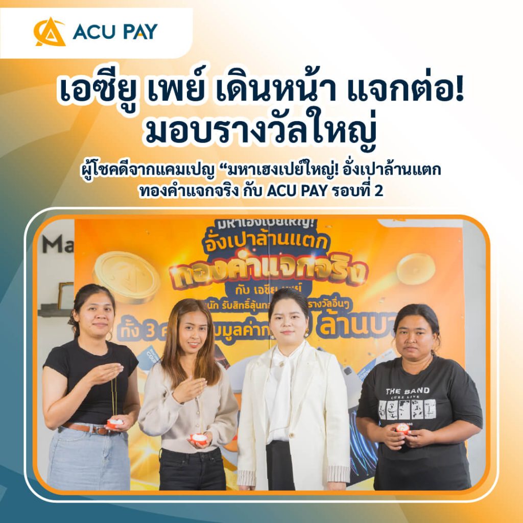 เมื่อวันที่ 19 ธันวาคม 2568 บริษัท เอซียู เพย์ (ไทยแลนด์) จำกัด จัดพิธีมอบรางวัลให้แก่ผู้โชคดีจากแคมเปญ “มหาเฮงเปย์ใหญ่! อั่งเปาล้านแตก ทองคำแจกจริง กับ ACU PAY รอบที่ 2” ซึ่งได้มีการจับรางวัลและประกาศรายชื่อผู้โชคดีผ่านเพจเฟซบุ๊ก Thairath – ไทยรัฐออนไลน์ เมื่อวันที่ 8 ธันวาคม 2568 ที่ผ่านมา โดยรางวัลในครั้งนี้ประกอบไปด้วย สร้อยคอทองคำ หนัก 2 สลึง, แหวนทองคำ หนัก 2 สลึง, iPhone 17 รุ่น Pro Max ขนาด 1TB และ iPad Pro รุ่น 11 นิ้ว (M5) Wi-Fi + Cellular ขนาด 512 GB พร้อมด้วย Apple Pencil (USB-C)