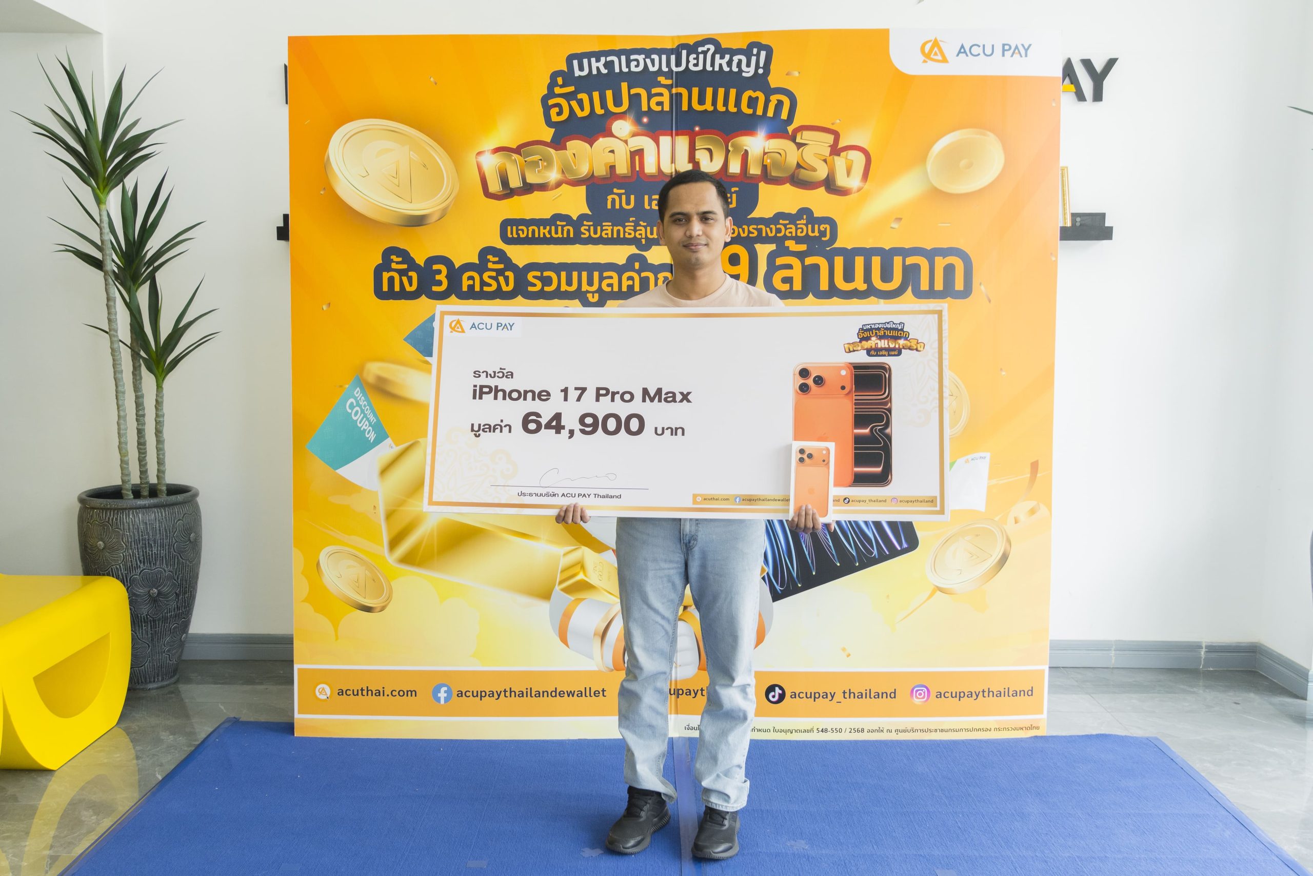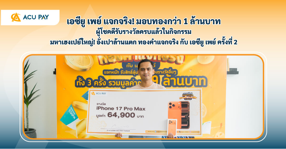ตลอดแคมเปญ ACU PAY ได้มอบรางวัลรวมมูลค่ากว่า 1 ล้านบาท ตอกย้ำความคุ้มค่าและความสุขให้ผู้ใช้งานอย่างแท้จริง และความสนุกยังไม่สิ้นสุด! กิจกรรมรอบสุดท้ายเริ่มแล้ว สำหรับผู้ที่พลาดรางวัล ยังร่วมลุ้นได้ระหว่างวันที่ 30 พฤศจิกายน 2568 – 11 เมษายน 2569 พร้อมของรางวัลมากมาย อาทิ แหวนและสร้อยทองคำ 2 สลึง, iPhone 17 Pro Max 1TB, iPad Pro M5 และคูปองส่วนลดในแอป ACU PAY