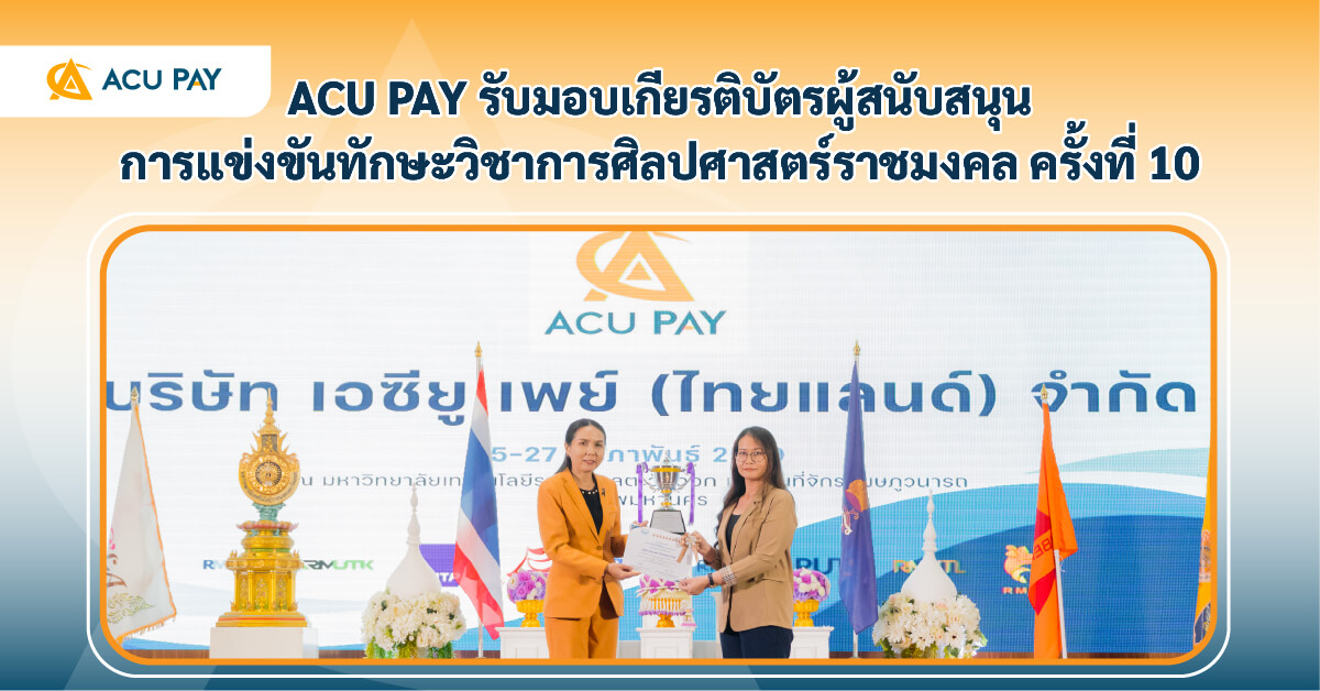ACU PAY รับมอบเกียรติบัตรผู้สนับสนุนการแข่งขันทักษะวิชาการศิลปศาสตร์ราชมงคล ครั้งที่ 10