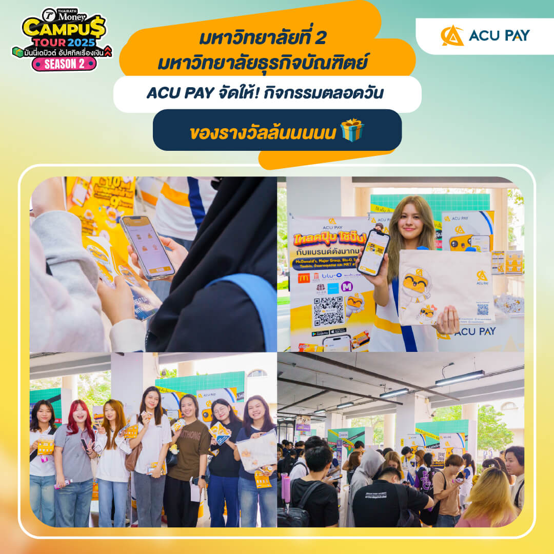 ACU PAY พร้อมพาทุกคนย้อนกลับไปสัมผัสบรรยากาศแห่งความสนุกจากทัวร์มหาวิทยาลัยประจำปี ที่อัดแน่นด้วยกิจกรรมสุดพิเศษ ของรางวัลมากมาย และพลังความคึกคักของน้อง ๆ นักศึกษาจากหลากหลายสถาบัน บอกเลยว่าทุกพื้นที่เราไปถึง เต็มไปด้วยรอยยิ้มและเสียงหัวเราะแบบไม่ขาดช่วง!