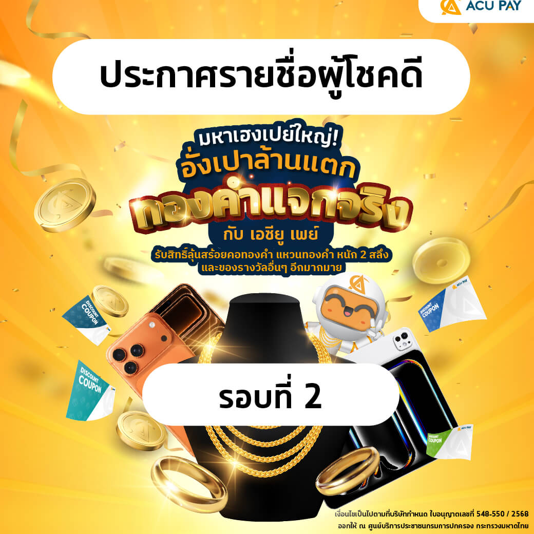 ประกาศรายชื่อผู้โชคดี รอบที่ 2 กับกิจกรรม “มหาเฮงเปย์ใหญ่! อั่งเปาล้านแตก ทองคำแจกจริง กับ เอซียู เพย์”