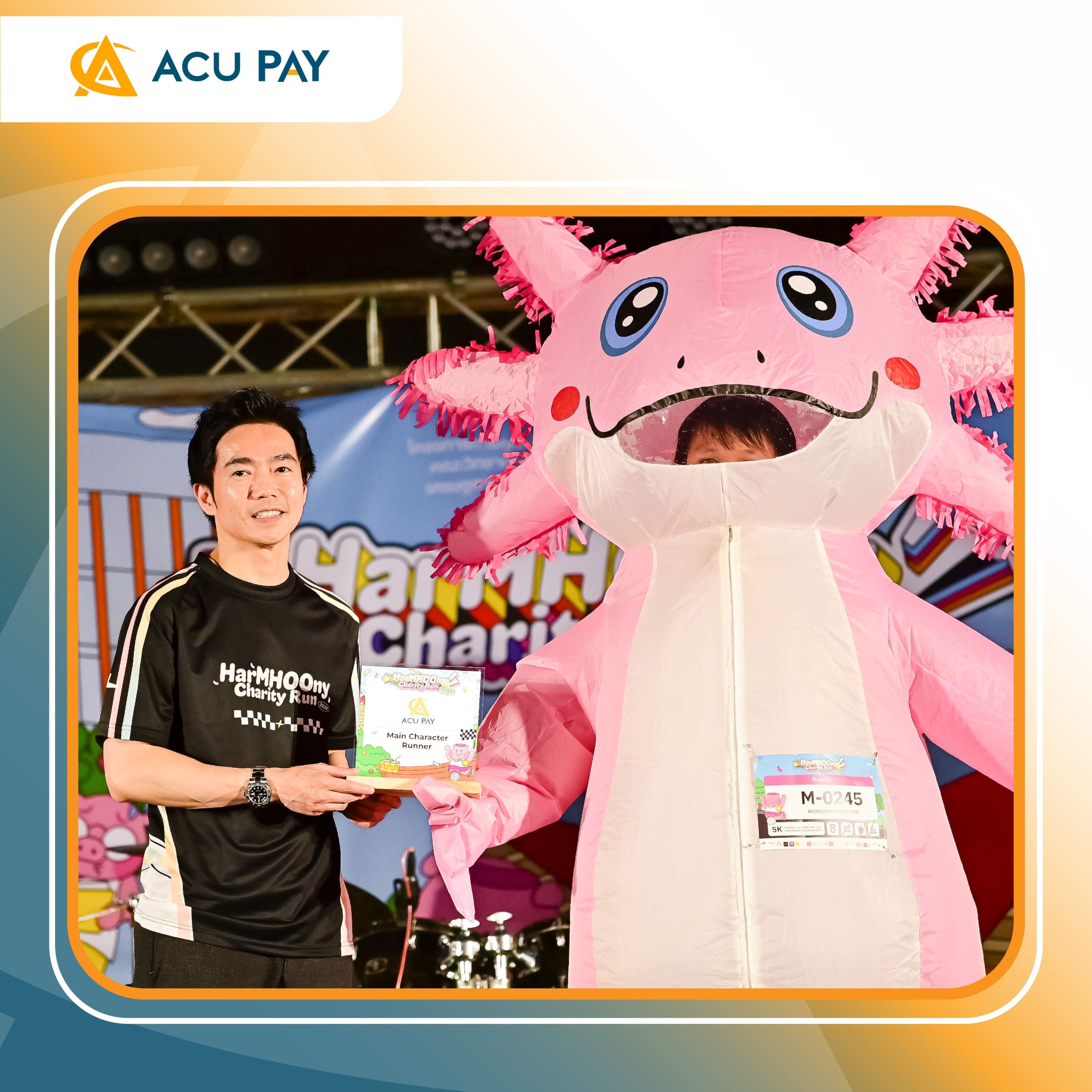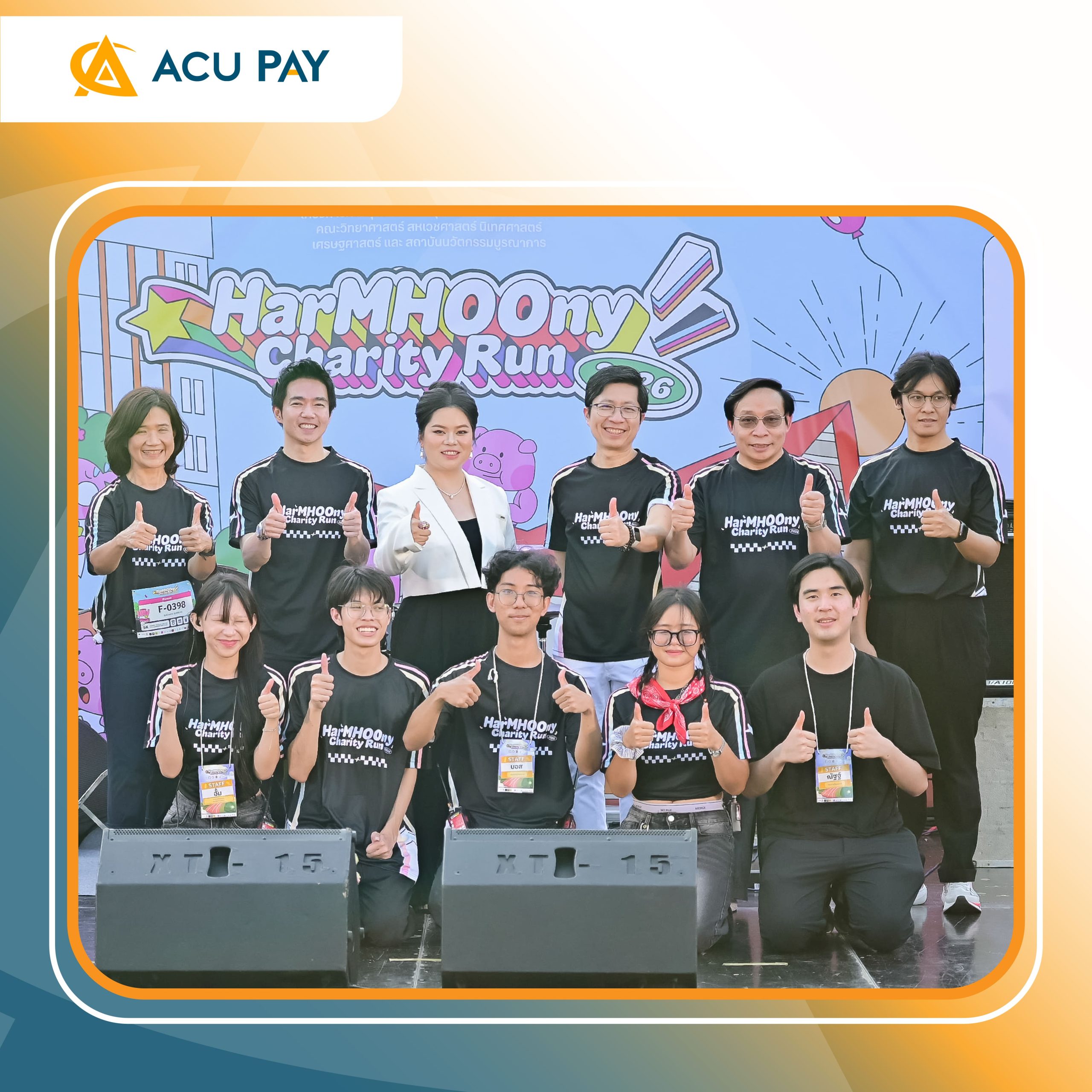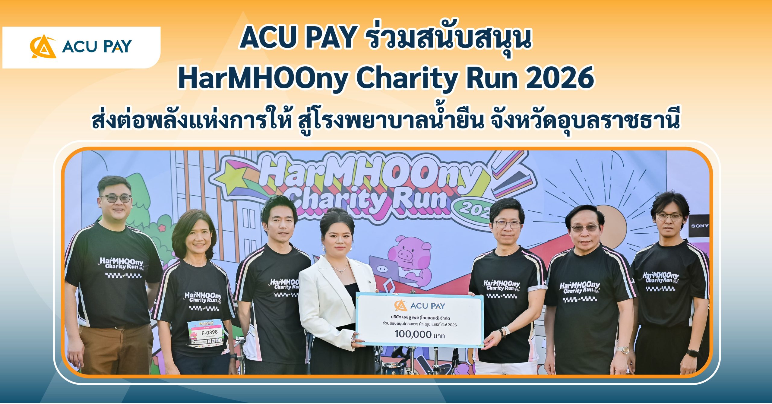 ACU PAY ร่วมเป็นผู้สนับสนุนหลักงาน HarMHOOny Charity Run! 2026 อีกหนึ่งกิจกรรมที่เปิดโอกาสให้ทุกก้าวของการวิ่งได้ส่งต่อความหมายไปไกลกว่าภายในงาน จัดขึ้นในวันที่ 21 มีนาคม 2569 ณ อุทยาน 100 ปี จุฬาลงกรณ์มหาวิทยาลัย โดยรายได้จากการจัดโครงการหลังหักค่าใช้จ่าย จะนำไปบริจาคให้แก่ โรงพยาบาลน้ำยืน จังหวัดอุบลราชธานี เพื่อนำไปสมทบทุนจัดซื้ออุปกรณ์ทางการแพทย์ และสนับสนุนการดูแลประชาชนในพื้นที่บริเวณชายแดนไทย-กัมพูชา