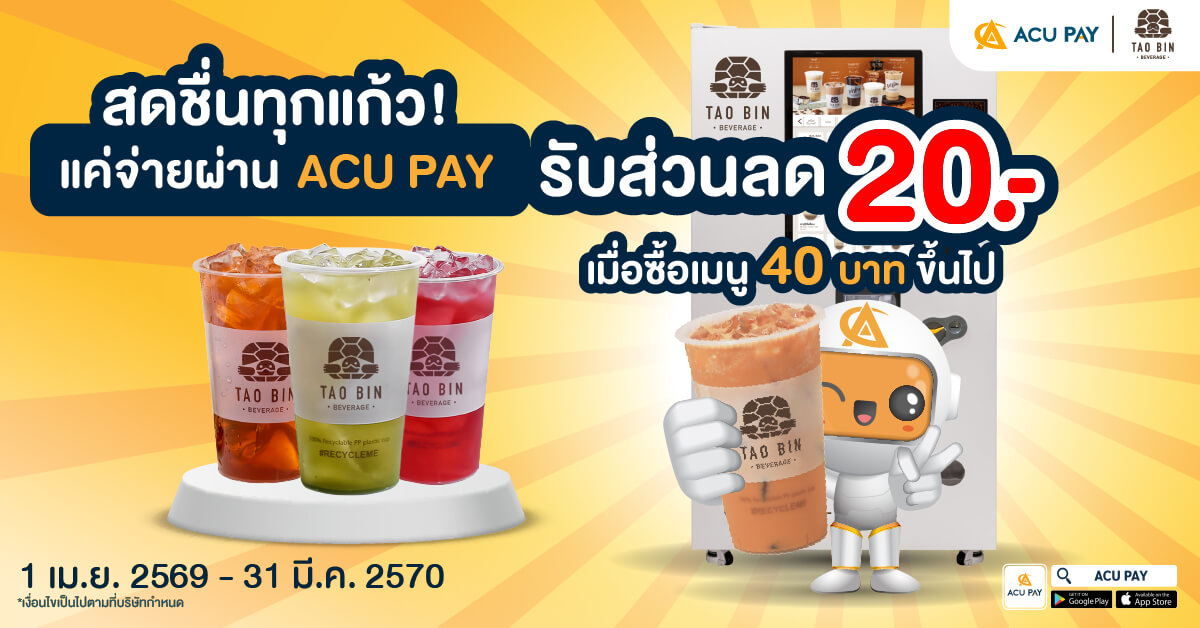 โปรพิเศษ ACU PAY E-Wallet : ส่วนลดเครื่องดื่มเต่าบิน 20 บาท!